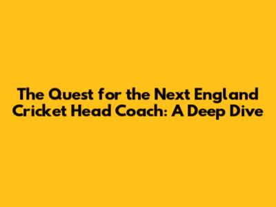England Cricket Head Coach: What You Need To Know