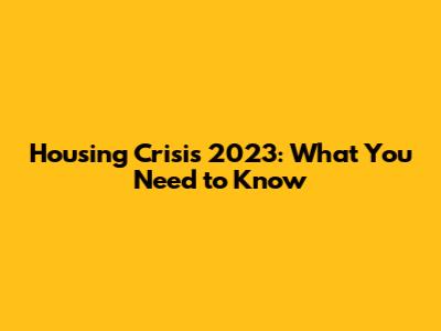 Housing Crisis 2023: What You Need To Know